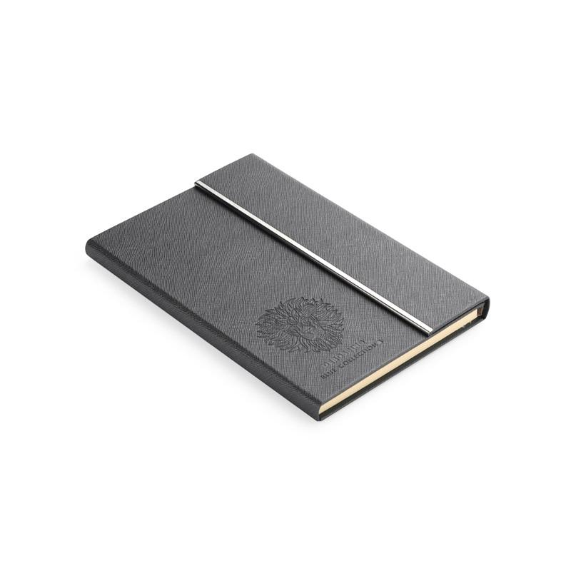 Notes wykonany z materiału skóropodobnego (PU) o ciekawym wzornictwie. Okładka zamykana na magnesy, wykończona z jednej strony blaszką w kolorze srebrnym. Notes INA to elegancki wygląd, solidne wykonanie i piękne wzornictwo. Wnętrze notesu wykonane z papieru o gramaturze 80 gram, 80 kremowych kartek w szare linie. Format A5.