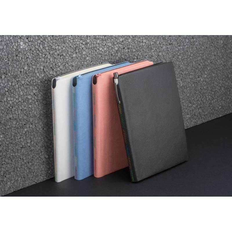 BELLIS ma grzbiet obszyty kolorowymi nitkami, co sprawia, że ten klasyczny notes wygląda wyjątkowo oryginalnie. Oprawa wykonana z dwóch różnych materiałów połączonych kolorowym przeszyciem. Krawędzie kartek w kolorze okładki. Notes zawiera 160 kartek w linie.