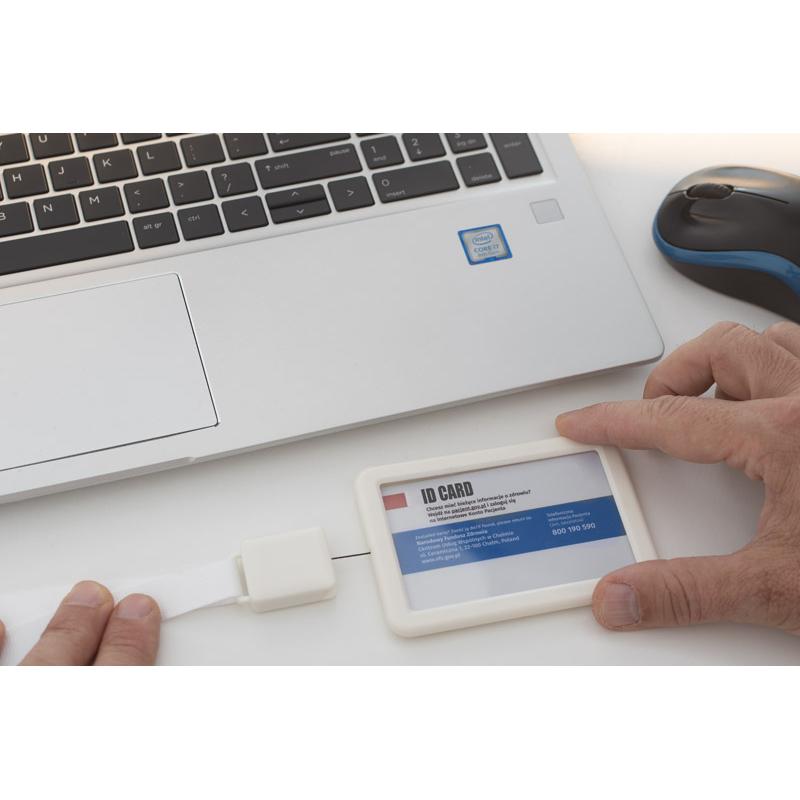 Etui na identyfikator BINO to gadżet, który zapewni Ci wygodę użytkowania każdego identyfikatora czy karty dostępu. Dzięki rozwijanej smyczy o długości 30 cm nie będziesz musiał się schylać do czytnika czy okazania przepustki. Identyfikator zawieszony na szerokiej, przyjemnej w dotyku taśmie o długości 86cm, która posiada możliwość rozłączenia końcówek oraz regulacji długości w klipsie na końcu tasiemki.