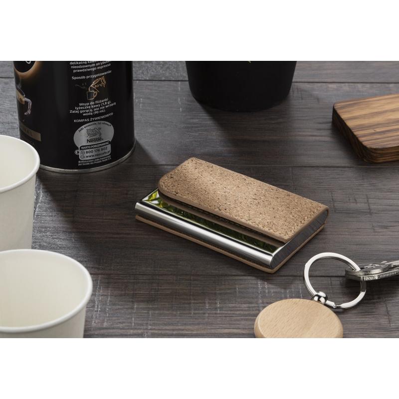 Wizytownik KIPEE jest wykonany z korka i metalu, przez co doskonale nadąża za modą na naturalne tworzywa. Posiada zapięcie na magnes. Mieści do 20 standardowych wizytówek.