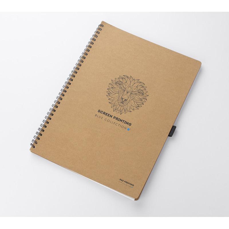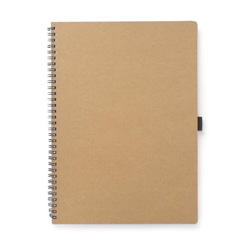 Klasyczny notes na spirali w papierowej, brązowej okładce wraz z miejscem na długopis. Kartki w notesie wykonane są z papieru kamiennego. Papier ten jest wyjątkowo wytrzymały i odporny na wilgoć. Posiada 60 kartek w linie, format A4. Zapakowany w woreczek biodegradowalny.
