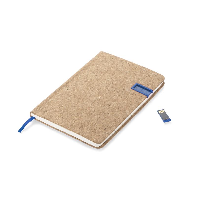 Notes w twardej korkowej oprawie. W okładce została umieszczona pamięć USB o pojemności 16 GB. Zawiera 80 kartek w linie. Kartki w notesie wyprodukowane z papieru.