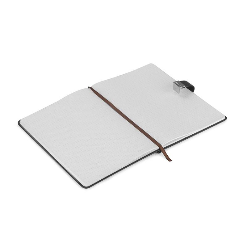 Notes IDELO w eleganckiej, klasyczniej okładce wykonanej z materiału skóropodobnego (PU). Zawiera 80 kartek w kropki oraz praktyczną wstążeczkę pełniącą funkcję zakładki. Kartki w notesie zostały wykonane z papieru. Format B5. Zapakowany w kraftowe pudełko.