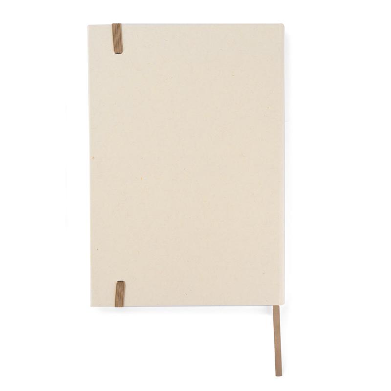 Okładka i kartki w notesie zostały wyprodukowane z kartonów po mleku. Okładka zamykana za pomocą elastycznej gumki. Wewnątrz znajduje się wstążeczka pełniąca funkcję zakładki. Format A5, 80 gładkich kartek.