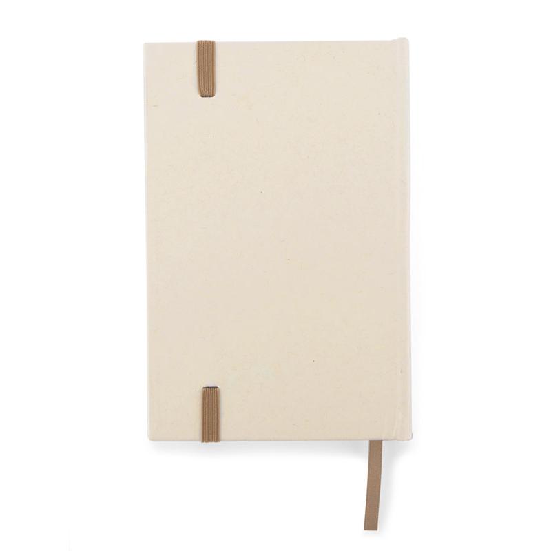 Okładka i kartki w notesie zostały wyprodukowane z kartonów po mleku. Okładka zamykana za pomocą elastycznej gumki. Wewnątrz znajduje się wstążeczka pełniąca funkcję zakładki. Format A6, 80 gładkich kartek.