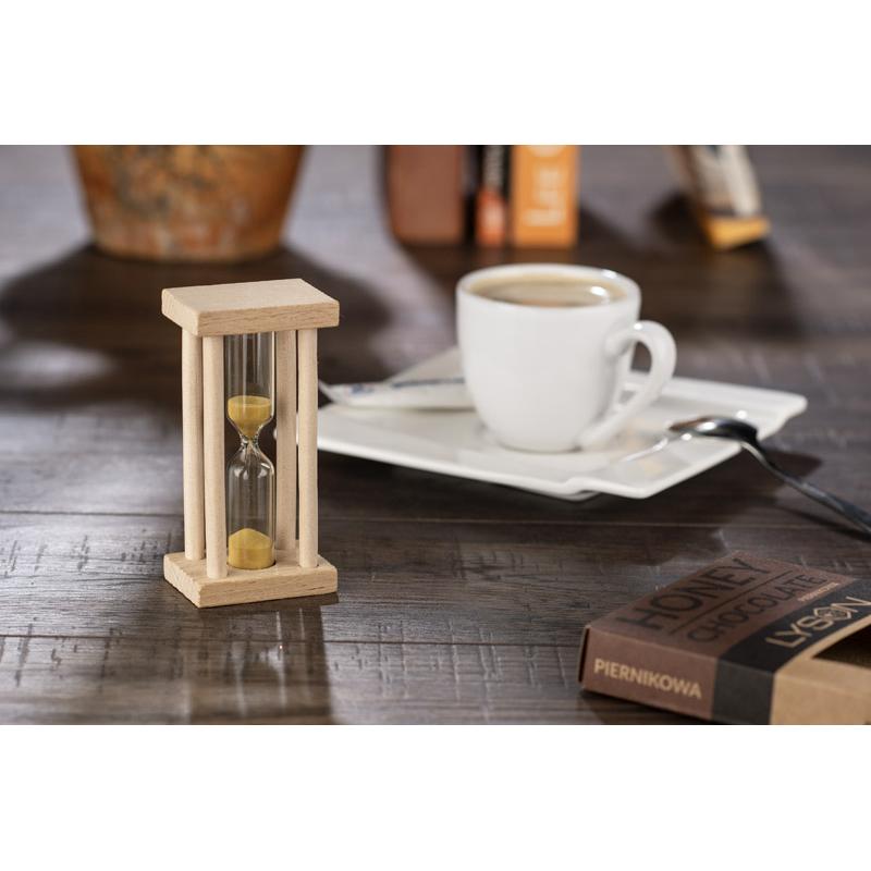 Odmierzaj czas w wyjątkowy sposób dzięki drewnianej klepsydrze TIEMPO! Ten stylowy gadżet precyzyjnie odmierza 3 minuty, stając się nieocenionym narzędziem do zarządzania czasem w biurze i nie tylko. Idealna do krótkich przerw lub sesji pracy, klepsydra pomoże zwiększyć Twoją produktywność i skupić się na zadaniach.