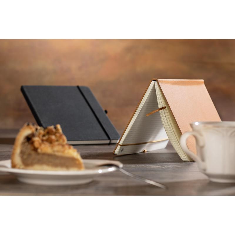 Notes GLITZO posiada 80 recyklingowanych kartek w kratkę, ma kompaktowy format A5 i twardą okładkę wykonaną z recyklingowanego PU. Produkt jest zamykany za pomocą praktycznej gumki, która zapewnia bezpieczeństwo Twoim notatkom, a wstążeczka pełniąca funkcję zakładki, pozwoli Ci z łatwością odnaleźć miejsce, w którym skończyłeś. Dodatkowo, notes posiada miejsce na długopis, co czyni go jeszcze bardziej funkcjonalnym.