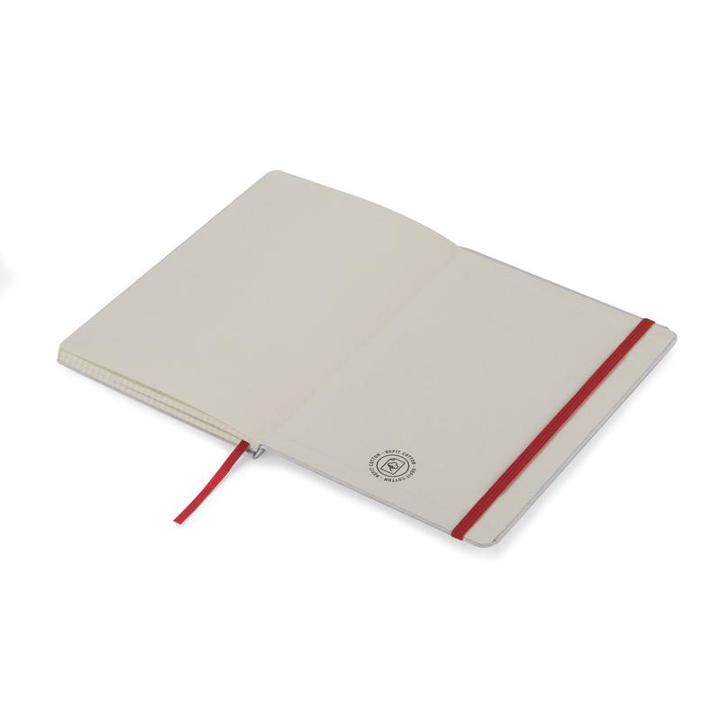 Notes MOSATO idealnie wpisuje się w eko trendy. Okładka notesu została wykonana z materiału Refit Cotton - jest to ekologiczny papier upcyclingowy produkowany z domieszką włókien bawełnianych. Posiada 80 kartek w kratkę wykonanych z recyklingowanego papieru. Zamykany za pomocą kolorowej gumki.