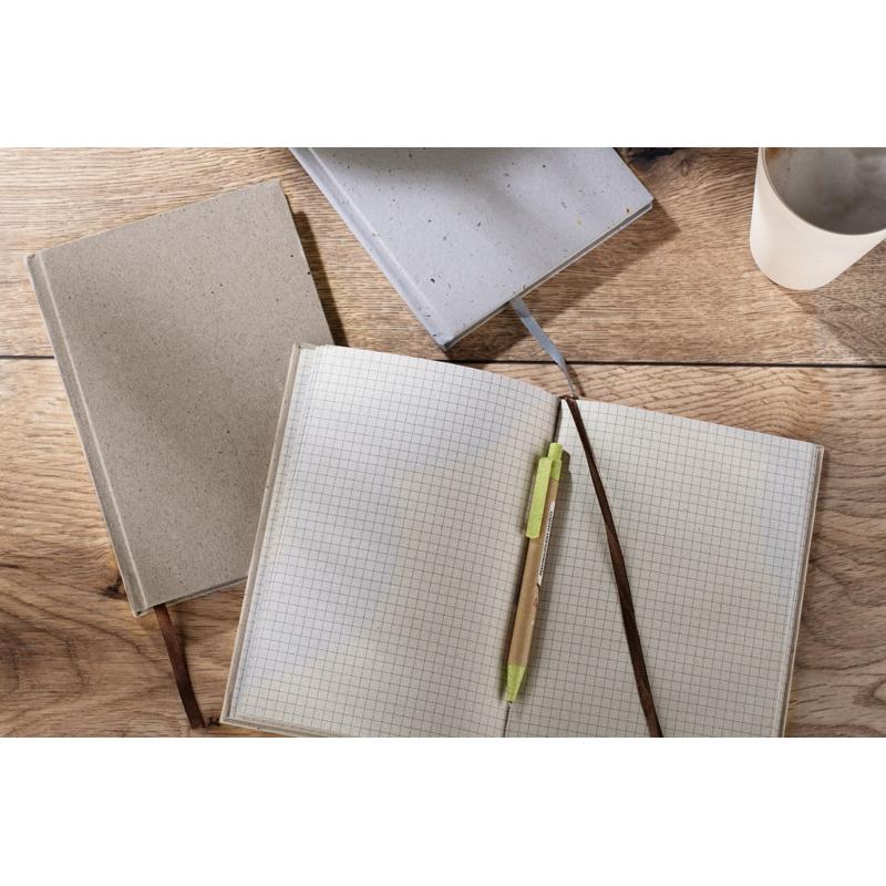 Notes TEO w formacie A5 wyróżnia się wyjątkową okładką wykonaną z papieru z dodatkiem liści herbaty i bawełny, co nadaje mu niepowtarzalny charakter. Wewnątrz znajdziesz kartki w kratkę, które doskonale sprawdzą się do notowania i rysowania. To praktyczny i stylowy dodatek, który łączy trwałość z unikalnym designem.