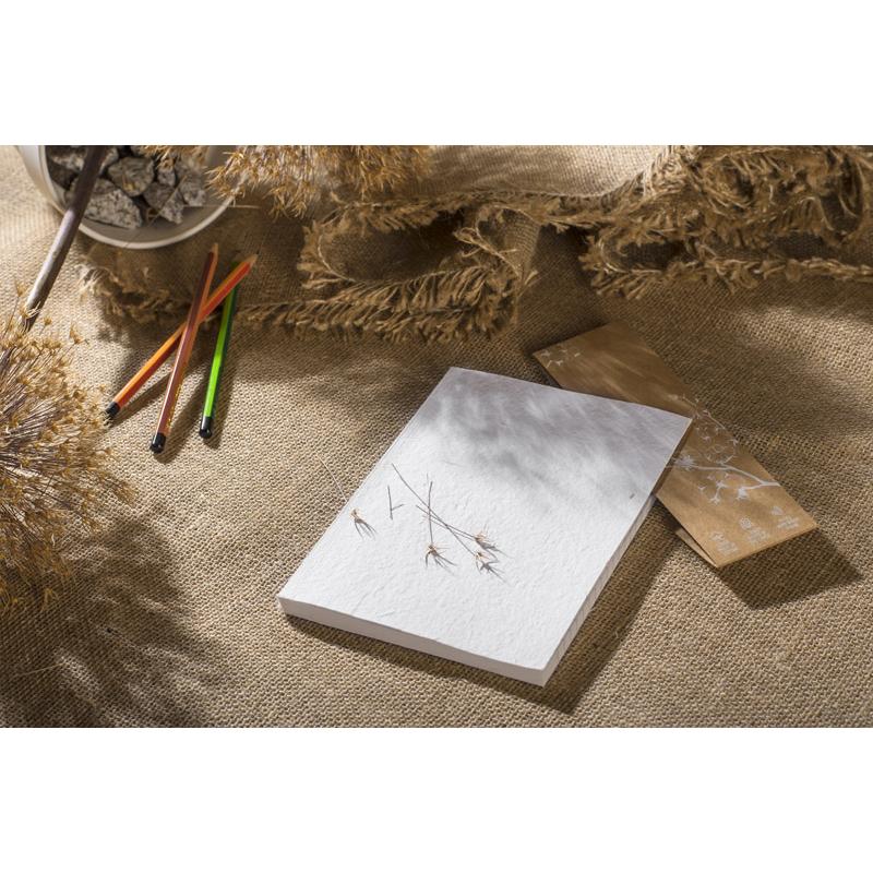 Notes MARIGOLD to wyjątkowy notatnik z okładką wykonaną z kwiatów bawełny i nagietka, zawierającą nasiona kwiatów stanowiące od 1 do 5% jej masy. Kartki wykonane są z papieru na bazie słomy pszennej o gramaturze 80 g/m², a w środku znajduje się 80 kartek w linię. Notes posiada także zdejmowalną zakładkę z papieru kraftowego.