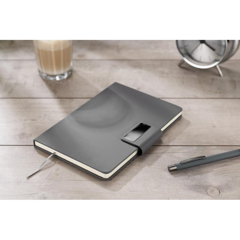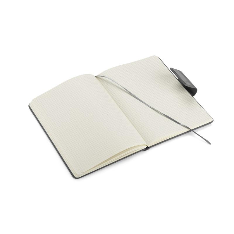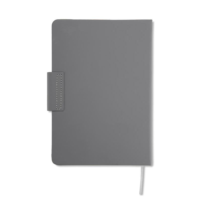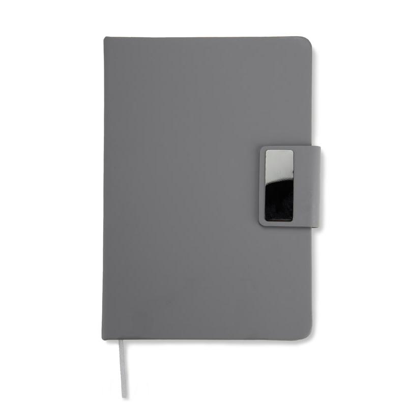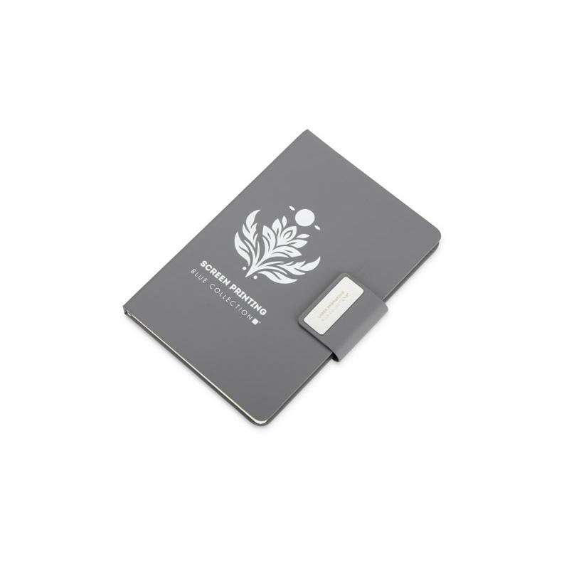 Notes NORO A5 to elegancki gadżet biurowy z matową okładką i charakterystycznym zapięciem na magnes, wykończonym dekoracyjną blaszką. W środku znajduje się 96 kartek w kratkę w kolorze ecru, zszywanych dla wygodnego użytkowania. Stylowy i funkcjonalny – doskonale sprawdzi się jako nośnik identyfikacji wizualnej marki.