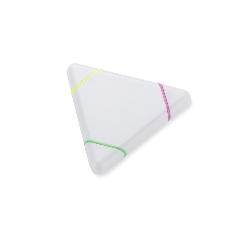 Zakreślacz w formie trójkąta. Wygodny i praktyczny. Posiada trzy kolory zakreślacza: żółty, zielony i różowy. Logo nanosimy na powierzchnię zakreślacza metodą tampodruku.