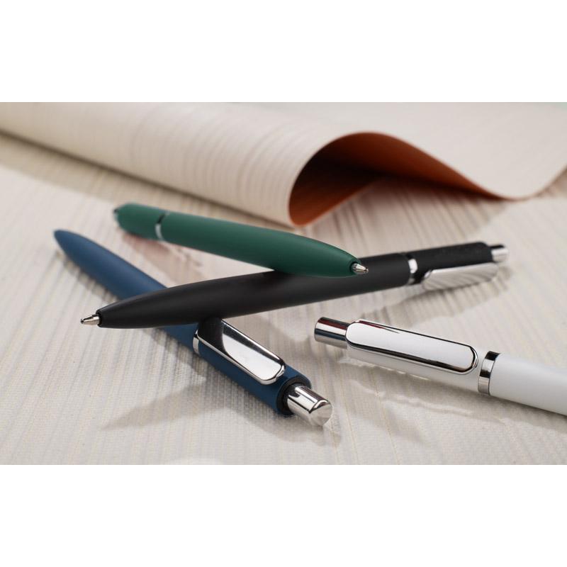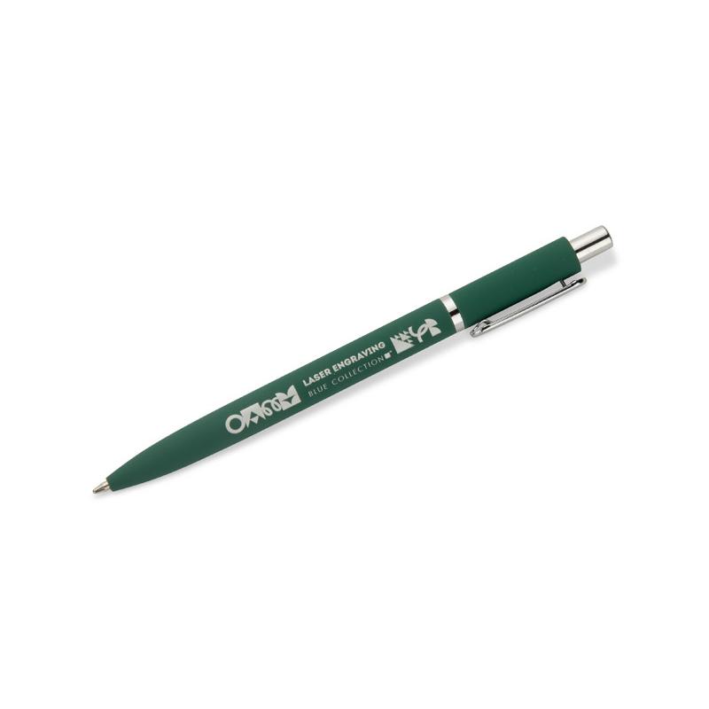 Długopis ELMO to elegancki model o nowoczesnym wyglądzie, wykonany z metalu pokrytego powłoką typu soft touch. Gumowana powierzchnia zapewnia przyjemny i pewny chwyt, a krótki, zaokrąglony klip w srebrnym, metalowym wykończeniu dodaje całości subtelnego charakteru. Długopis wyposażony jest w automatyczny mechanizm wysuwu oraz wkład typu G2 o grubości pisania 0,7 mm, gwarantujący płynny i precyzyjny zapis.
