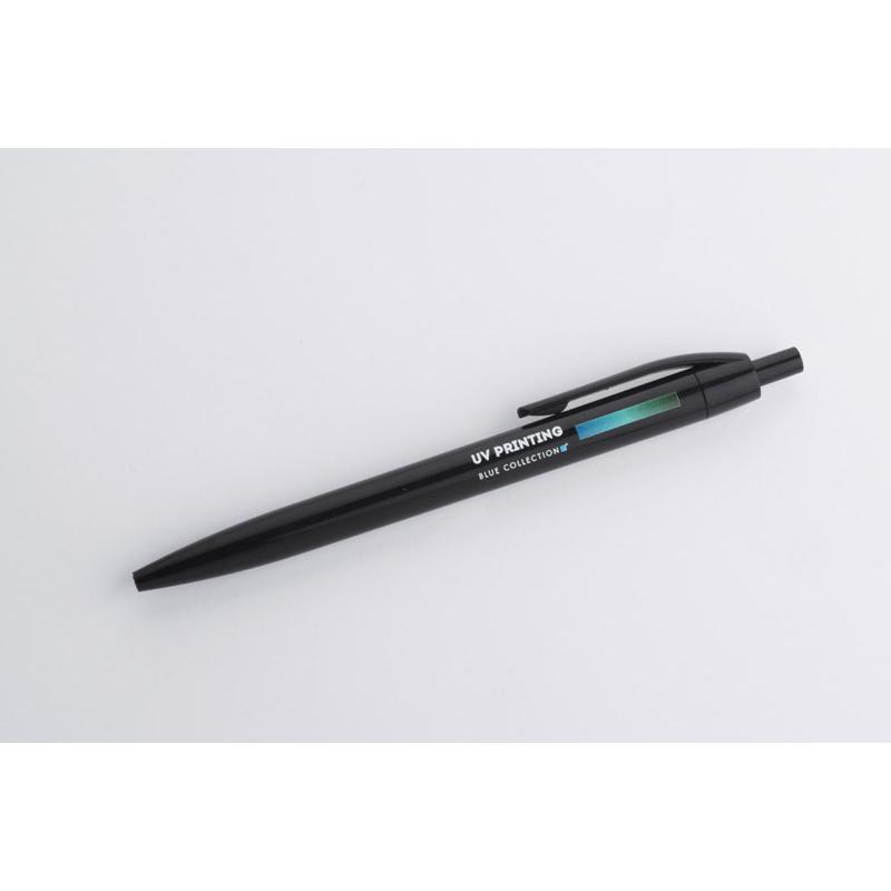 Plastikowy długopis BASIC z niebieskim wkładem. Logo nadrukujemy na korpusie.