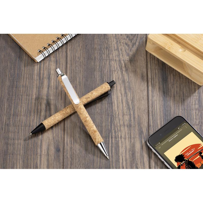 Długopis KORATO wyróżnia się swoim unikalnym designem. Metalowe wykończenia dodają elegancji, a naturalny korek podkreśla jego ekologiczny charakter. To nie tylko długopis, to styl życia, który nawiązuje do idei recyklingu i dbałości o środowisko. Niebieski wkład sprawia, że pisanie jest płynne i przyjemne, a jednocześnie wyraźne i czytelne. Długopis KORATO to idealne narzędzie dla każdego, kto ceni sobie komfort i jakość pisania.