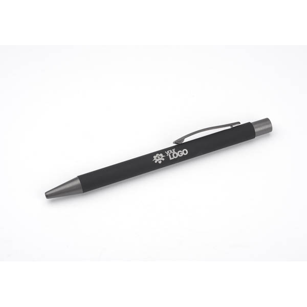 Długopis GOMA to prosty design połączony z przyjemną w dotyku gumowaną powierzchnią. Całość jest utrzymana w lekkich, matowych barwach. Wykonany z aluminium. Wykończenia w kolorze grafitowym. Wkład w kolorze czarnym.
