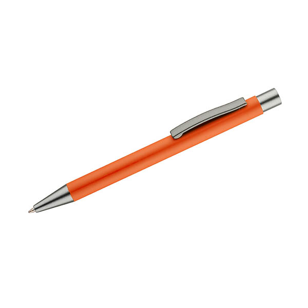 Długopis GOMA to prosty design połączony z przyjemną w dotyku gumowaną powierzchnią. Całość jest utrzymana w lekkich, matowych barwach. Wykonany z aluminium. Wykończenia w kolorze grafitowym. Wkład w kolorze czarnym.