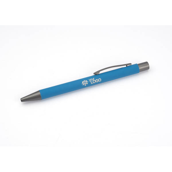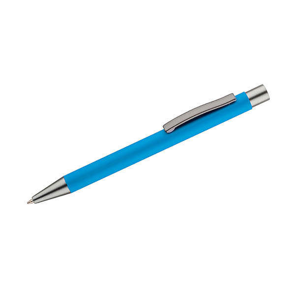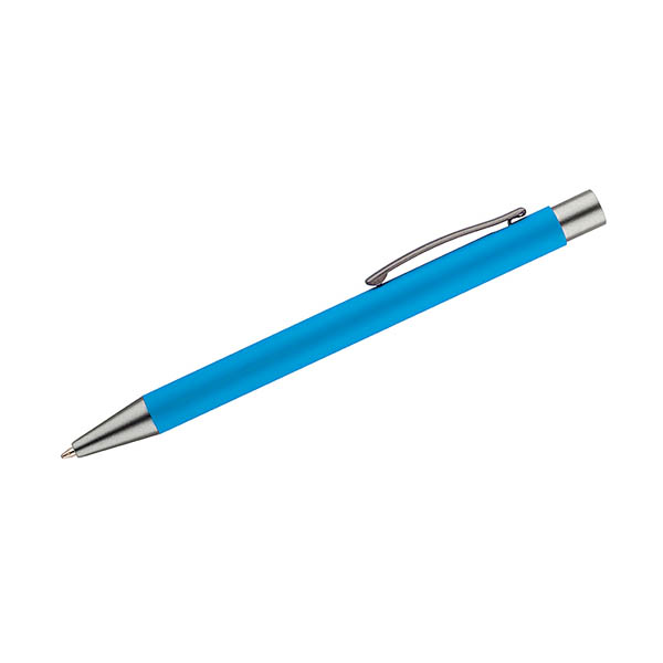 Długopis GOMA to prosty design połączony z przyjemną w dotyku gumowaną powierzchnią. Całość jest utrzymana w lekkich, matowych barwach. Wykonany z aluminium. Wykończenia w kolorze grafitowym. Wkład w kolorze czarnym.
