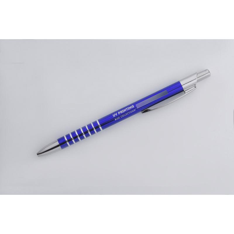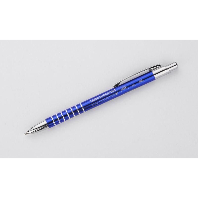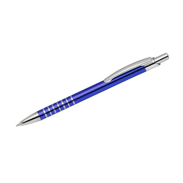 Prosty długopis wykonany z aluminium ozdobiony szerokimi ringami. Logo wygrawerujemy.