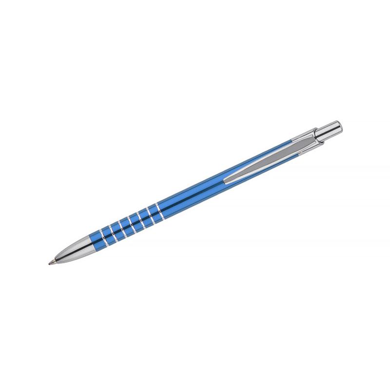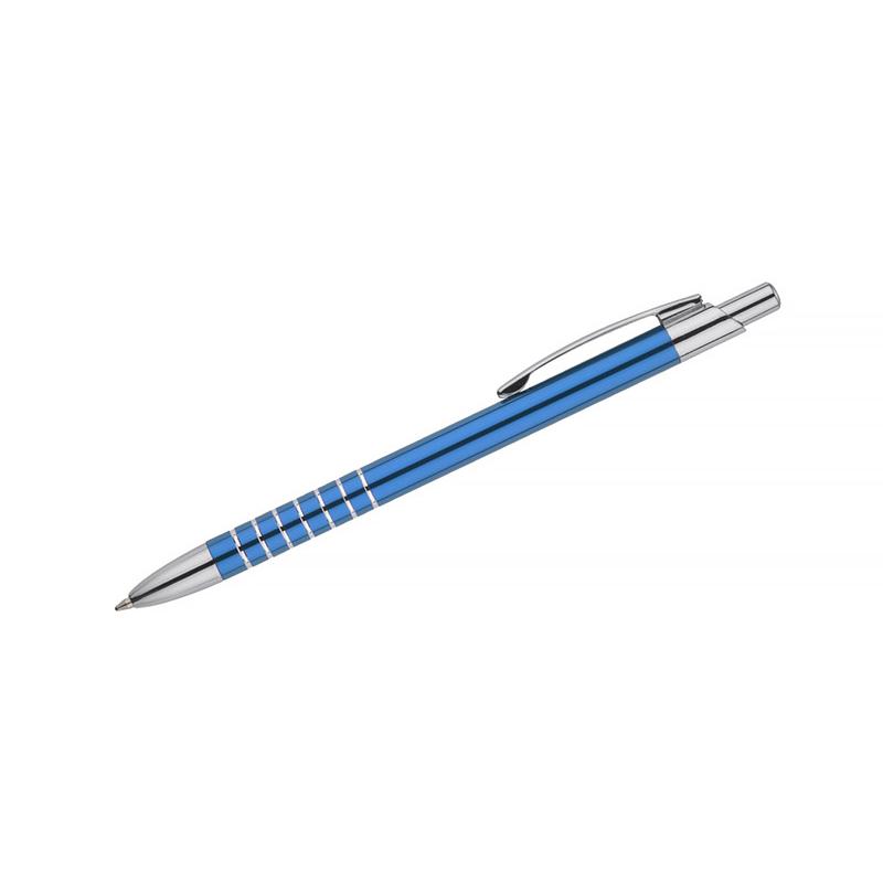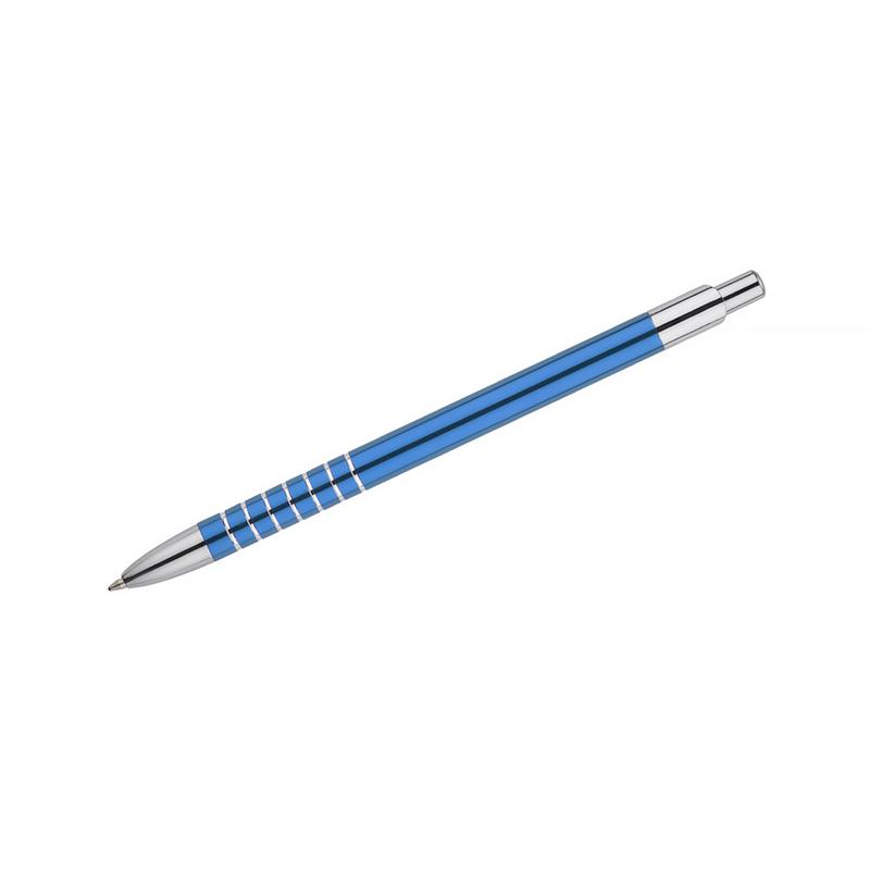 Prosty długopis wykonany z aluminium ozdobiony szerokimi ringami. Logo wygrawerujemy.