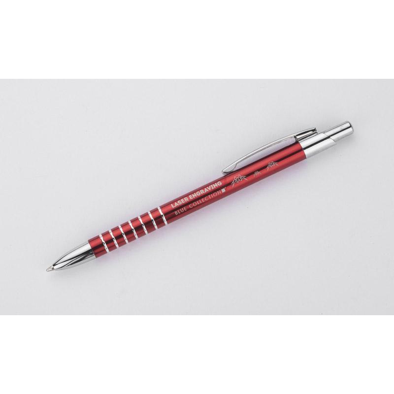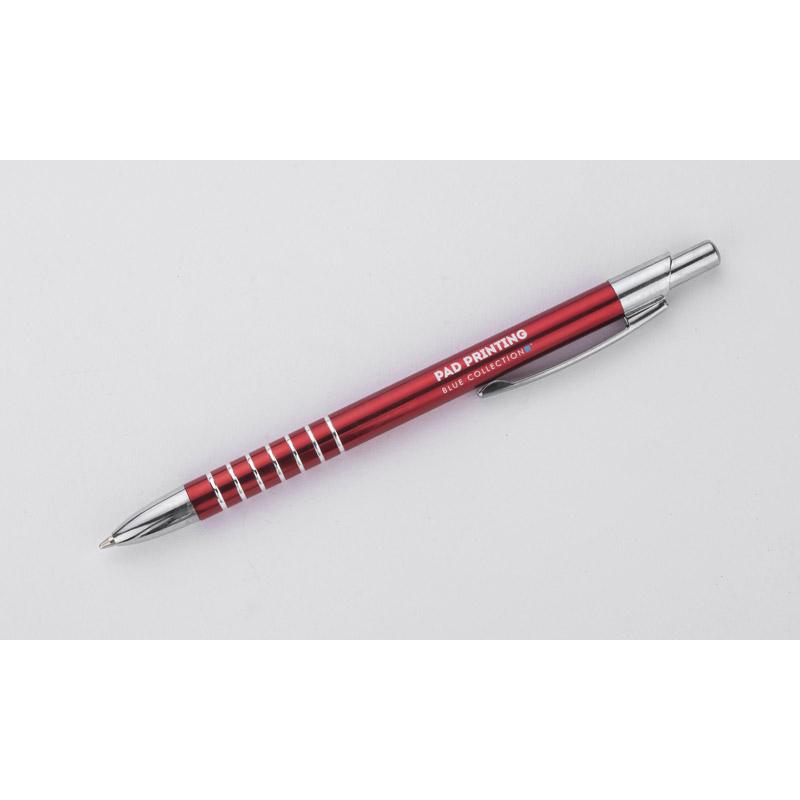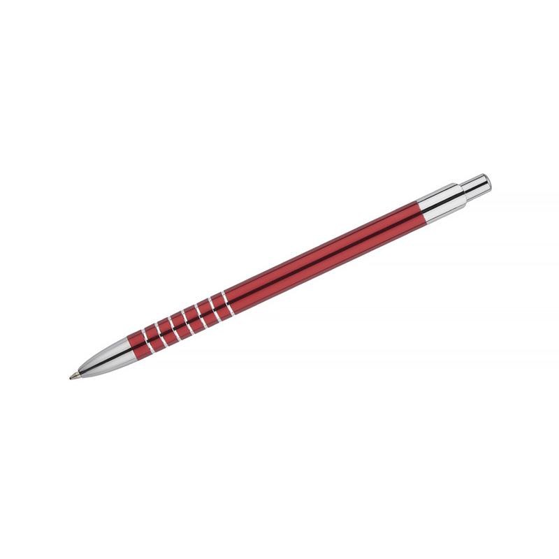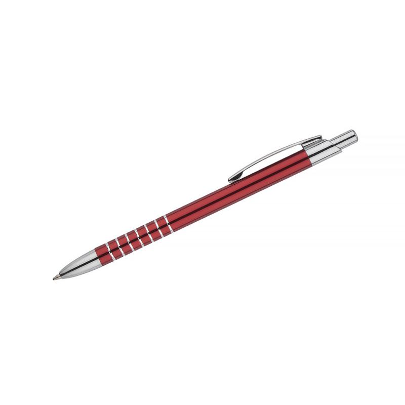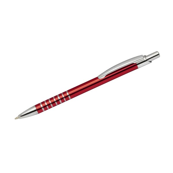 Prosty długopis wykonany z aluminium ozdobiony szerokimi ringami. Logo wygrawerujemy.