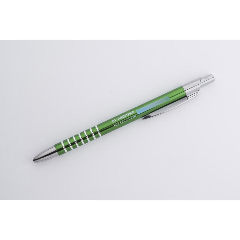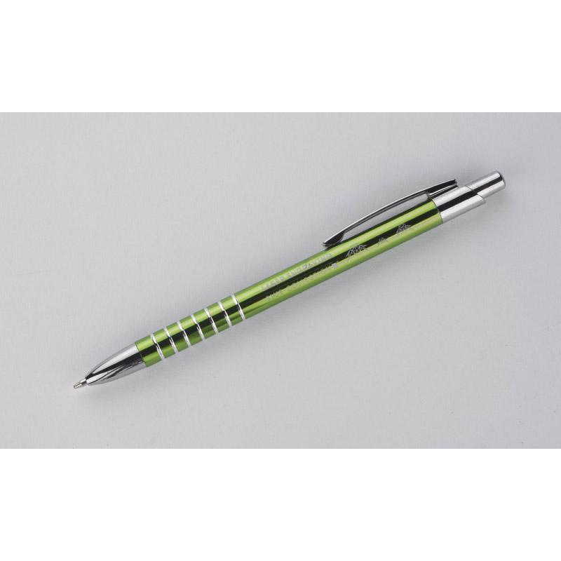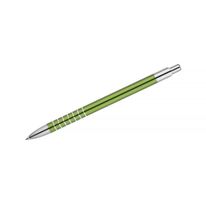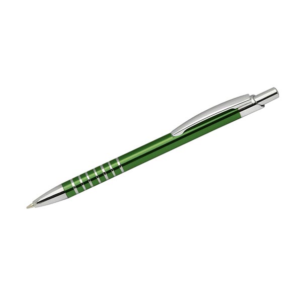 Prosty długopis wykonany z aluminium ozdobiony szerokimi ringami. Logo wygrawerujemy.