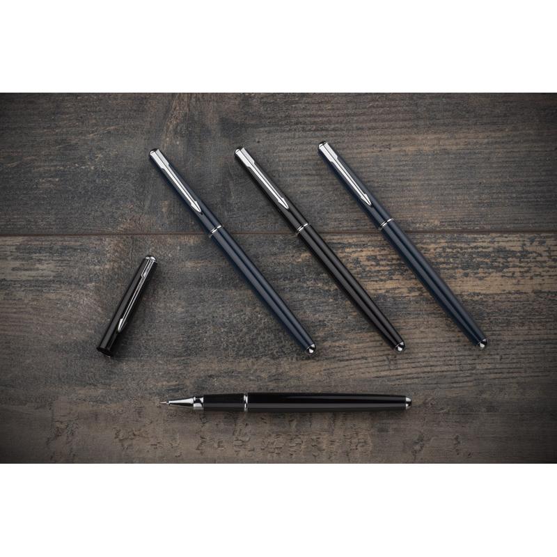 Pióro kulkowe wykonane z metalu ze srebrnymi wykończeniami. Klasyczne wzornictwo zapewnia mu ponadczasową elegancję.