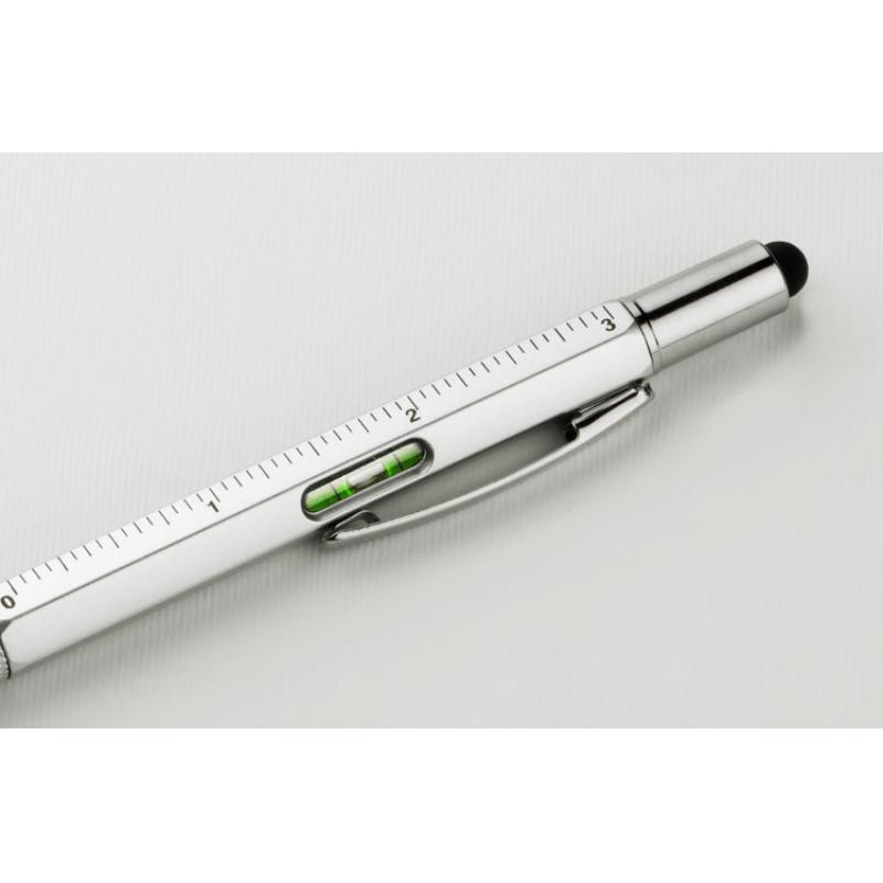 Wielozadaniowy długopis dla każdego fana majsterkowania. Gadżet wyposażony jest w dwie miarki (centymetry i cale) umieszczone na korpusie oraz małą poziomicę. Natomiast pod nakrętką z touch penem znajduje się dwustronny śrubokręt mocowany za pomocą magnesu - poręczny i wygodny w użyciu. Znakowanie możliwe na korpusie.