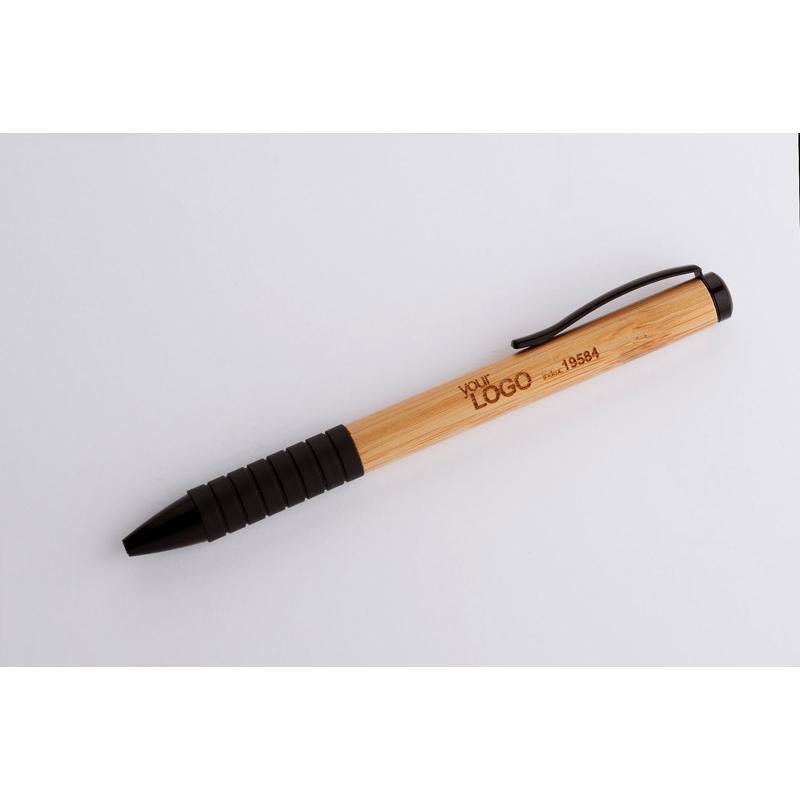 Miła odskocznia od tradycyjnych metalowych i plastikowych długopisów. Ten gadżet posiada korpus wykonany z litego kawałka bambusu. Całość uzupełniają gustowne wstawki i elementy mechanizmu w kolorze czarnym. Znakowanie możliwe na bambusowej części korpusu.