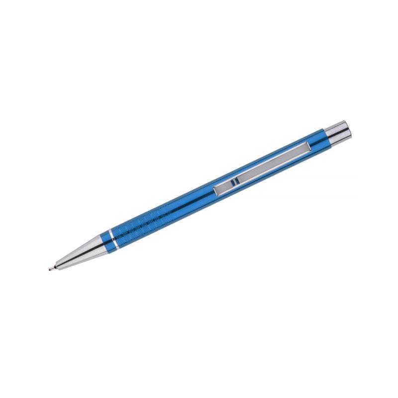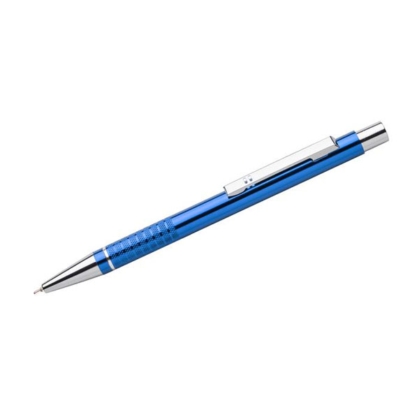 Długopis BONITO to klasyczny elegancki długopis metalowy o metalicznych kolorach z chromowanymi wykończeniami. Wykonany z aluminium. Korpus ozdobiony srebrnym ringiem na dole oraz paskami o delikatnie chropowatej strukturze. Nowy typ wkładu z tuszem półżelowym o grubości pisania 0,7 mm. Wkład w kolorze niebieskim.