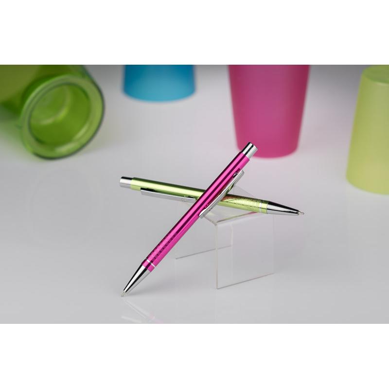 Długopis BONITO to klasyczny elegancki długopis metalowy o metalicznych kolorach z chromowanymi wykończeniami. Wykonany z aluminium. Korpus ozdobiony srebrnym ringiem na dole oraz paskami o delikatnie chropowatej strukturze. Nowy typ wkładu z tuszem półżelowym o grubości pisania 0,7 mm. Wkład w kolorze niebieskim.