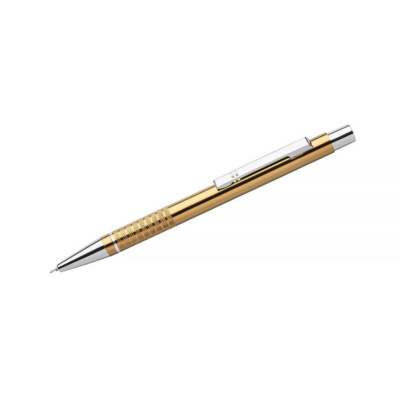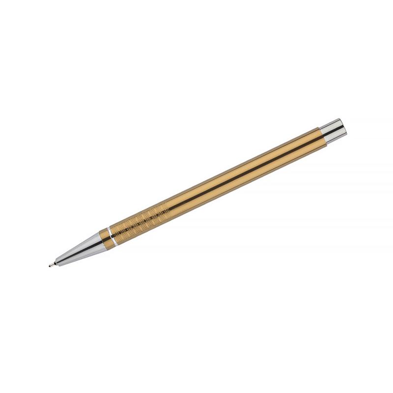 Długopis BONITO to klasyczny elegancki długopis metalowy o metalicznych kolorach z chromowanymi wykończeniami. Wykonany z aluminium. Korpus ozdobiony srebrnym ringiem na dole oraz paskami o delikatnie chropowatej strukturze. Nowy typ wkładu z tuszem półżelowym o grubości pisania 0,7 mm. Wkład w kolorze niebieskim.