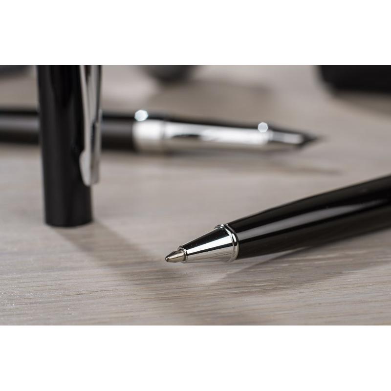 NEVADA to klasyczny, elegancki długopis wykonany z metalu. Korpus pokryty farbą. Wykończenia chromowane. Możliwość stworzenia zestawu piśmienniczego z piórem wiecznym o tym samym wzornictwie.