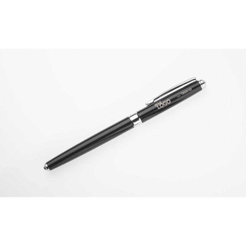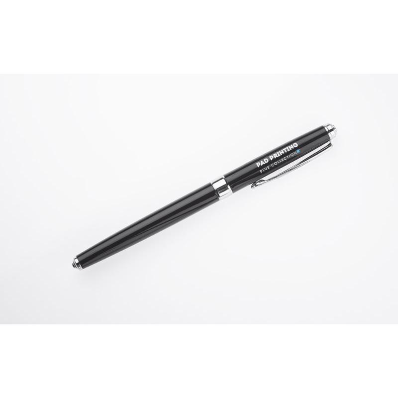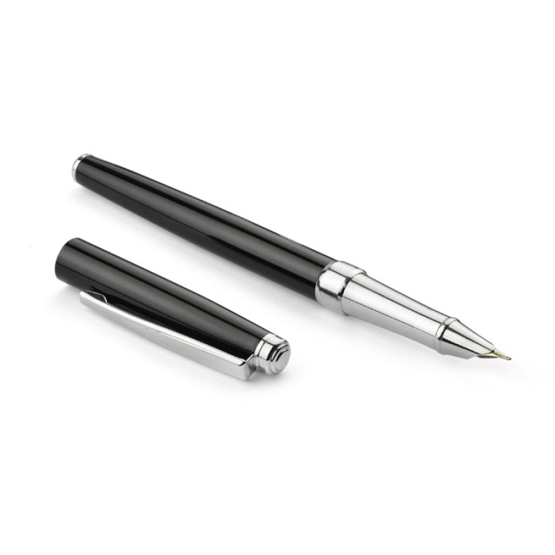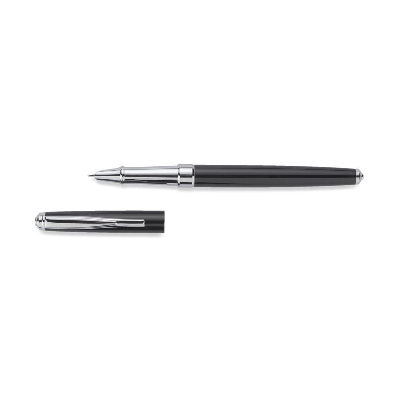NEVADA to klasyczne, eleganckie pióro wieczne wykonane z metalu. Korpus pokryty farbą. Wykończenia chromowane. Stalówka gustownie schowana wewnątrz. Pióro wyposażone w tłoczek. Możliwość stworzenia zestawu piśmienniczego z długopisem o tym samym wzornictwie.
