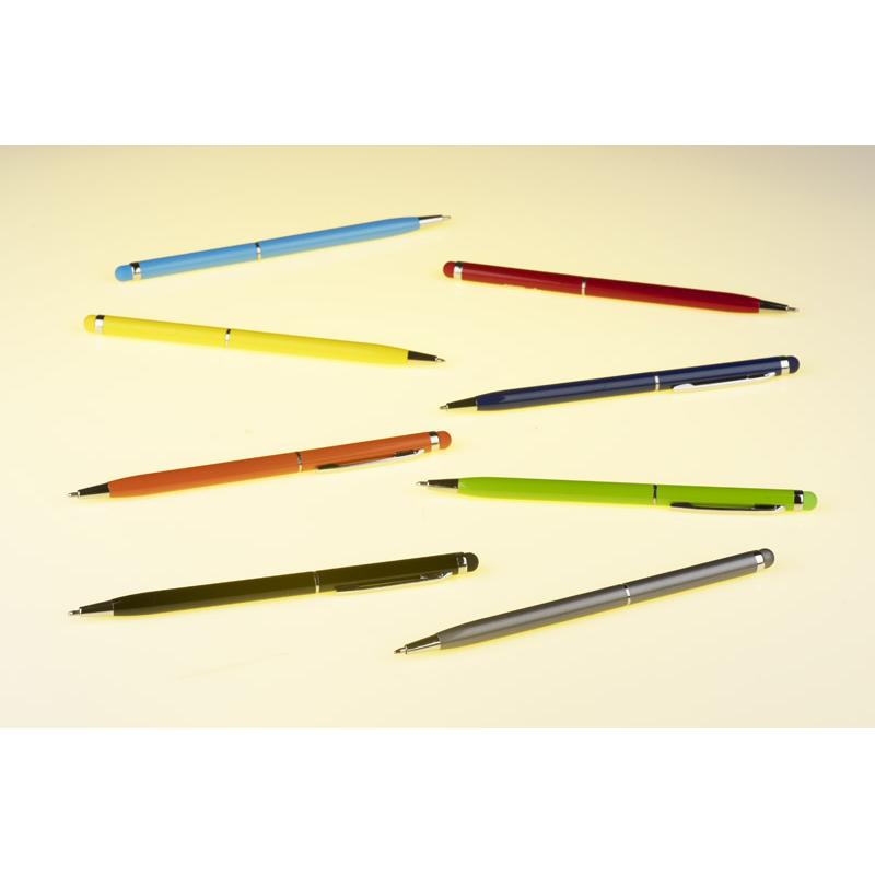 Nowa, ulepszona wersja dobrze znanego modelu. TIN 2 to cienki, metalowy długopis z kolorową końcówką do ekranów dotykowych (touch). Długopis posiada mechanizm typu ""twist"". Wkład w kolorze niebieskim.