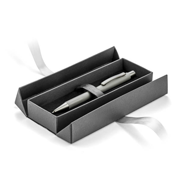 Etui do pakowania artykułów piśmienniczych wykonane z papieru. Zamykane za pomocą wstążki, którą można zawiązać w ozdobną kokardę.