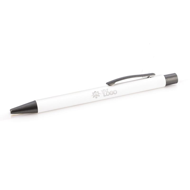 Długopis GOMA to prosty design połączony z przyjemna w dotyku gumowana powierzchnią. Całość jest utrzymana w lekkich, matowych barwach. Wykonany z aluminium. Wykończenia w kolorze grafitowym. Wkład w kolorze niebieskim.