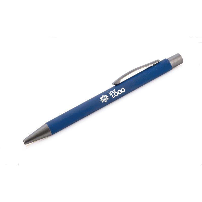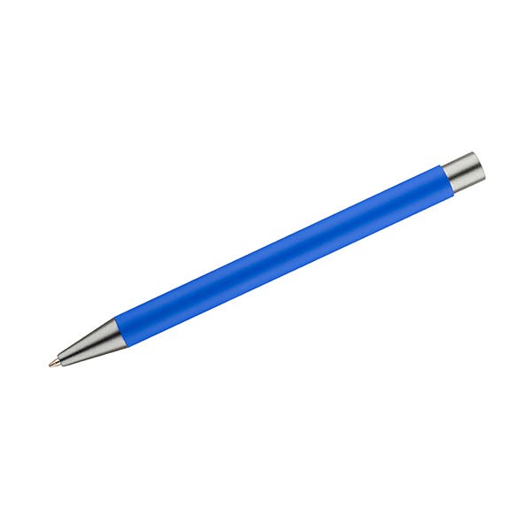 Długopis GOMA to prosty design połączony z przyjemna w dotyku gumowana powierzchnią. Całość jest utrzymana w lekkich, matowych barwach. Wykonany z aluminium. Wykończenia w kolorze grafitowym. Wkład w kolorze niebieskim.