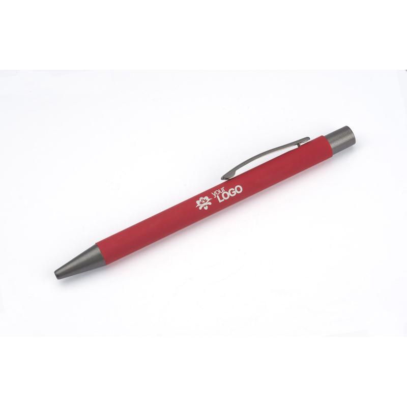 Długopis GOMA to prosty design połączony z przyjemna w dotyku gumowana powierzchnią. Całość jest utrzymana w lekkich, matowych barwach. Wykonany z aluminium. Wykończenia w kolorze grafitowym. Wkład w kolorze niebieskim.