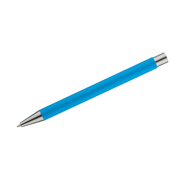 Długopis GOMA to prosty design połączony z przyjemna w dotyku gumowana powierzchnią. Całość jest utrzymana w lekkich, matowych barwach. Wykonany z aluminium. Wykończenia w kolorze grafitowym. Wkład w kolorze niebieskim.