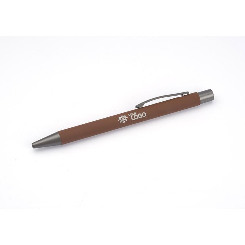 Długopis GOMA to prosty design połączony z przyjemna w dotyku gumowana powierzchnią. Całość jest utrzymana w lekkich, matowych barwach. Wykonany z aluminium. Wykończenia w kolorze grafitowym. Wkład w kolorze niebieskim.