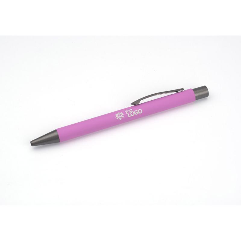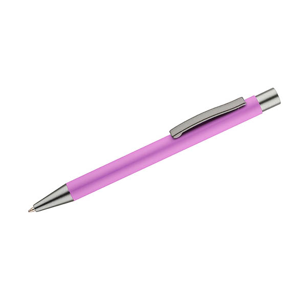 Długopis GOMA to prosty design połączony z przyjemna w dotyku gumowana powierzchnią. Całość jest utrzymana w lekkich, matowych barwach. Wykonany z aluminium. Wykończenia w kolorze grafitowym. Wkład w kolorze niebieskim.