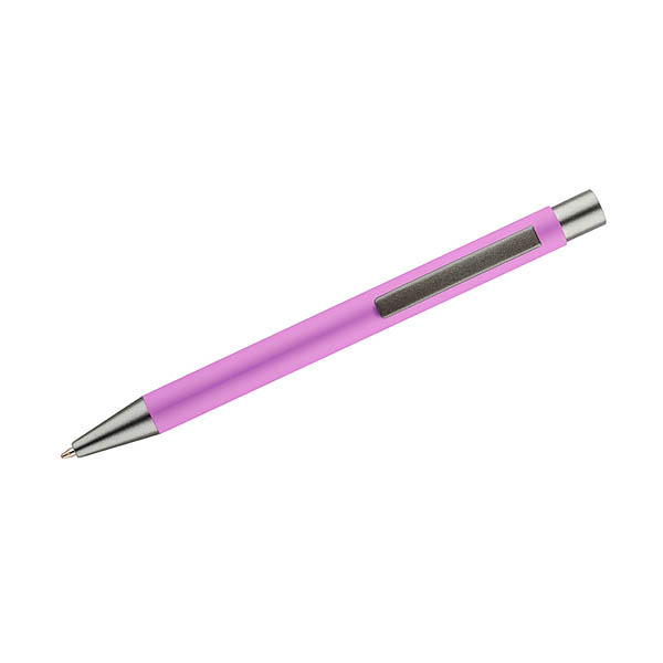 Długopis GOMA to prosty design połączony z przyjemna w dotyku gumowana powierzchnią. Całość jest utrzymana w lekkich, matowych barwach. Wykonany z aluminium. Wykończenia w kolorze grafitowym. Wkład w kolorze niebieskim.