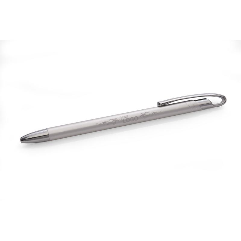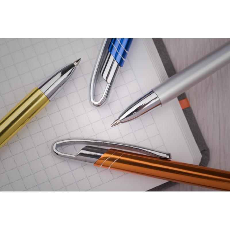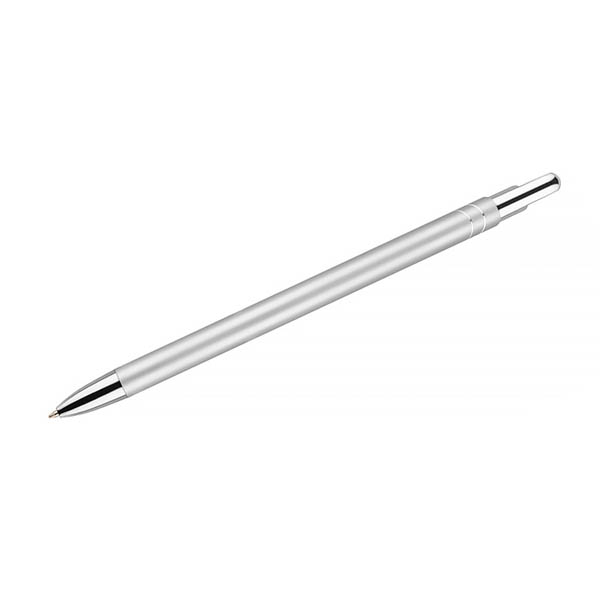 Cienki i zgrabny metalowy długopis w kolorze o metalicznym wykończeniu. Klip i końcówki w kolorze srebrnym chromowanym. AVALO wyróżnia się wśród podobnych długopisów oryginalnym projektem klipu. Korpus ozdobiony został dwoma skośnymi paskami w kolorze srebrnym. Wkład o grubości 0,7 mm w kolorze niebieskim.