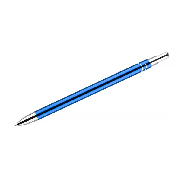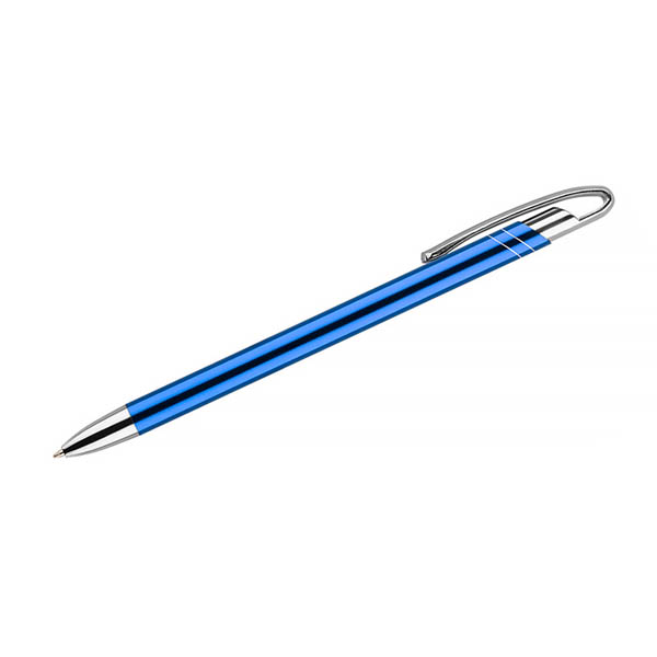 Cienki i zgrabny metalowy długopis w kolorze o metalicznym wykończeniu. Klip i końcówki w kolorze srebrnym chromowanym. AVALO wyróżnia się wśród podobnych długopisów oryginalnym projektem klipu. Korpus ozdobiony został dwoma skośnymi paskami w kolorze srebrnym. Wkład o grubości 0,7 mm w kolorze niebieskim.