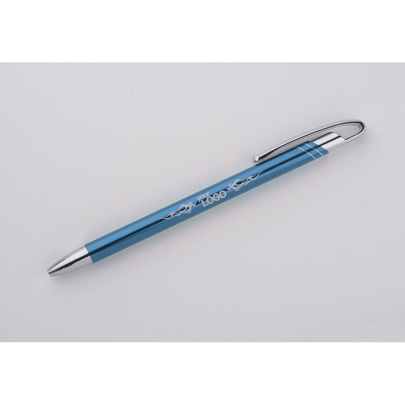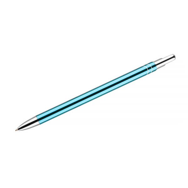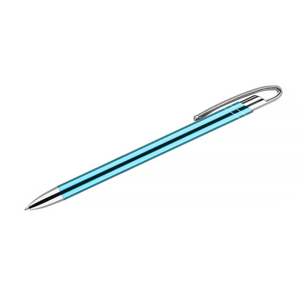 Cienki i zgrabny metalowy długopis w kolorze o metalicznym wykończeniu. Klip i końcówki w kolorze srebrnym chromowanym. AVALO wyróżnia się wśród podobnych długopisów oryginalnym projektem klipu. Korpus ozdobiony został dwoma skośnymi paskami w kolorze srebrnym. Wkład o grubości 0,7 mm w kolorze niebieskim.