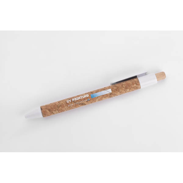 Długopis KORTE nawiązuje swoim wyglądem do idei recyclingu. Korpus został wykonany z naturalnego korka, a przycisk z drewna. Wykończenia z tworzywa sztucznego w żywych kolorach dodają mu uroku. Wkład w kolorze niebieskim.