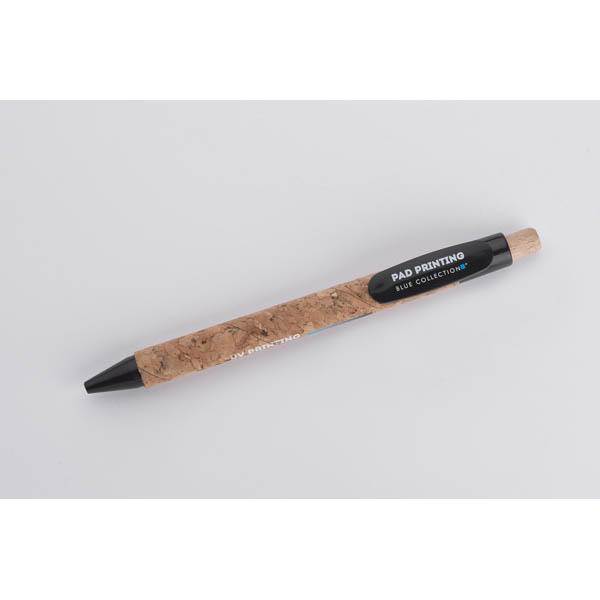 Długopis KORTE nawiązuje swoim wyglądem do idei recyclingu. Korpus został wykonany z naturalnego korka, a przycisk z drewna. Wykończenia z tworzywa sztucznego w żywych kolorach dodają mu uroku. Wkład w kolorze niebieskim.