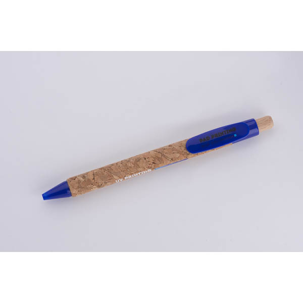 Długopis KORTE nawiązuje swoim wyglądem do idei recyclingu. Korpus został wykonany z naturalnego korka, a przycisk z drewna. Wykończenia z tworzywa sztucznego w żywych kolorach dodają mu uroku. Wkład w kolorze niebieskim.