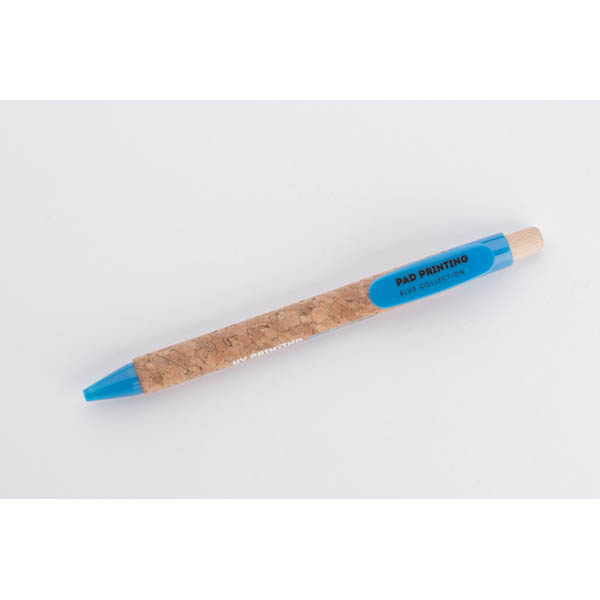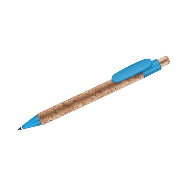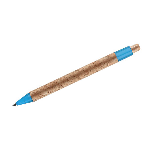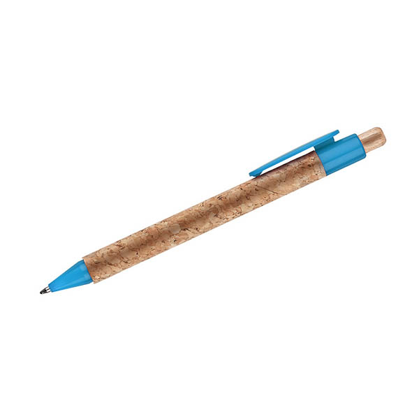 Długopis KORTE nawiązuje swoim wyglądem do idei recyclingu. Korpus został wykonany z naturalnego korka, a przycisk z drewna. Wykończenia z tworzywa sztucznego w żywych kolorach dodają mu uroku. Wkład w kolorze niebieskim.